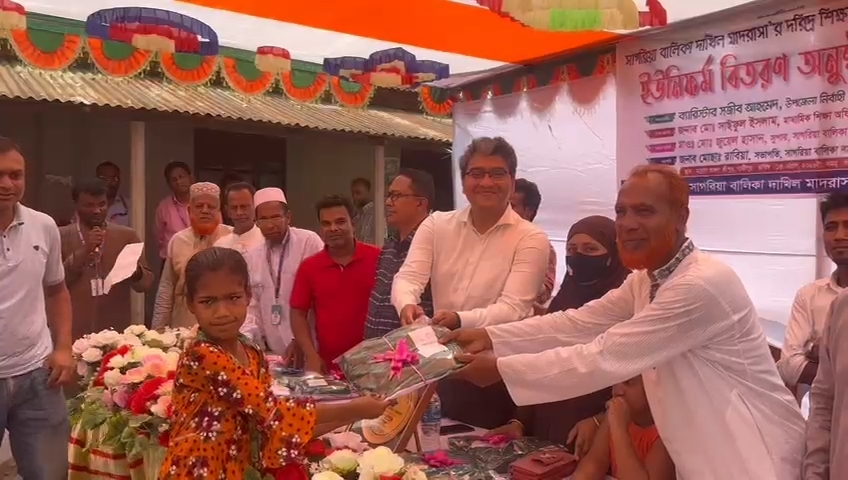 গাড়ারণ সাগরিকা বালিকা দাখিল মাদ্রাসার দরিদ্র শিক্ষার্থীদের মধ্যে ইউনিফর্ম বিতরন