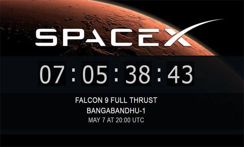 বাঙালির এই স্বপ্নযাত্রার অপেক্ষা আর মাত্র সাতদিন; ছয় ঘণ্টার প্রায়। দেশের প্রথম এ কৃত্রিম উপগ্রহ যুক্তরাষ্ট্রের মহাকাশ গবেষণা সংস্থা স্পেসএক্সের ‘ফ্যালকন-৯’ রকেটে করে মহাকাশের উদ্দেশ্যে উৎক্ষেপণ করা হবে ৭ মে।