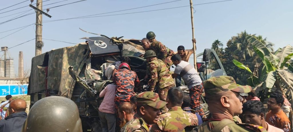 পুলিশ ও প্রত্যক্ষদর্শীরা জানায়, ফুলপুর ক্যাম্প থেকে সেনাবাহিনীর একটি দল ট্রাকযোগে ময়মনসিংহের উদ্দেশে রওনা হয়েছিল। পথে বালিয়া মোড় এলাকায় পৌঁছলে বিপরীত দিক থেকে আসা একটি শেরপুরগামী যাত্রীবাহী বাসের সঙ্গে ট্রাকটির মুখোমুখি সংঘর্ষ হয়।এতে বাস ও ট্রাকের সম্মুখভাগ দুমড়েমুচড়ে যায়। দুর্ঘটনায় দুই গাড়ির চালকসহ এক পথচারীও প্রাণ হারান।